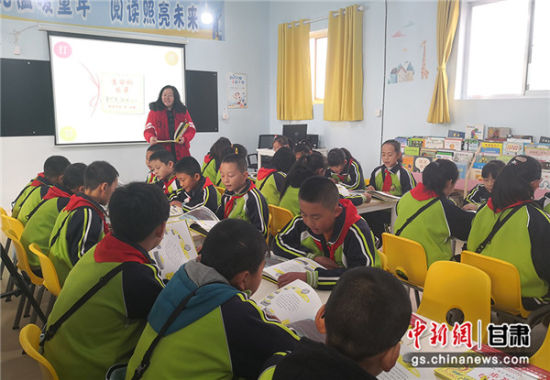 图为甘肃省定西市临洮县太石镇水泉小学举行读书活动 资料图