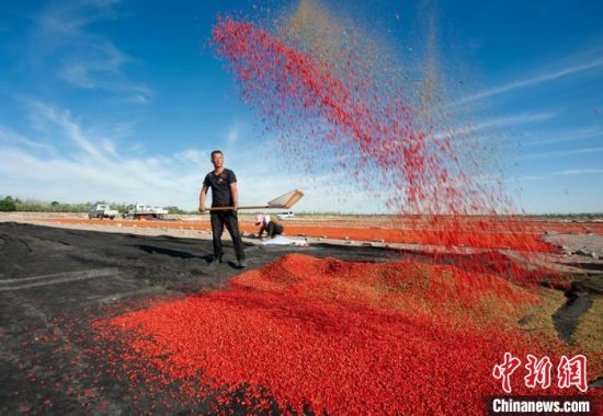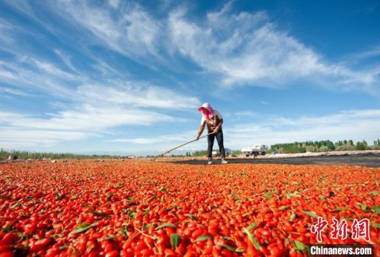 图为晾晒新鲜的枸杞。 师永红 摄