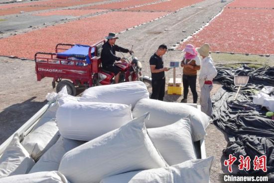 图为收集工人们采摘的枸杞。 师永红 摄