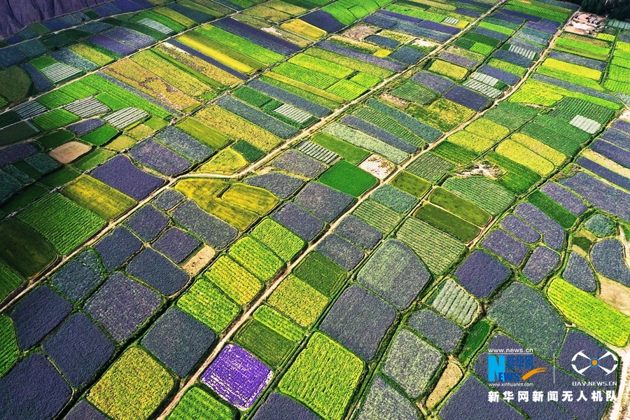 【“飞阅”中国】祁连山下万亩花田 宛如巨型“调色盘”