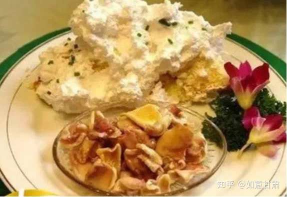 雪山驼掌,又名丝路驼掌,是定西的特色美食,口感香美、色味俱佳色泽分明,造型美观,口味咸鲜微辣。主要原料驼掌、鸡腿、猪蹄、火腿、鸡蛋、冬菇等,按烹制而成的。用高丽糊做雪峰置于盘中,再把煮熟去骨的驼掌切成片放入雪峰之间。驼掌筋烂,肉酥可口,色泽淡黄,晶莹透亮,味道鲜美。