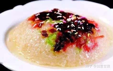 八宝饭也叫甜米饭,因为它的主要原料就是糯米,再加上豆沙,桂圆,大枣甚至樱桃等等甜甜的辅料,吃起来香甜软糯,而且足足的分量特别适合全家人一起享用,所有也有团团圆圆的好寓意。