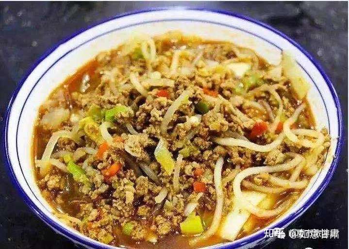 临夏人以面食为主,其中最受欢迎的就数各类面片了。河州老炒就是河州老炒面片,以羊肉末、粉条、葱、蒜等为主要原料,和面片一起炒制而成。曾盛行于80、90年代,90年代末被河沿面片代替,近年来再次回到大众的视野,逐渐回溯到临夏一带。厚厚的一层羊肉粉条铺在揪的大小合适色泽诱人的面片上面,光是看着就忍不住要吞口水了。