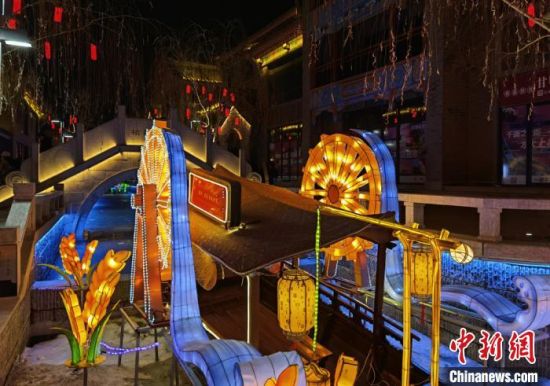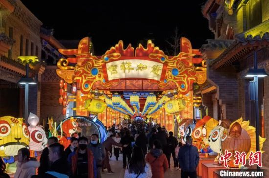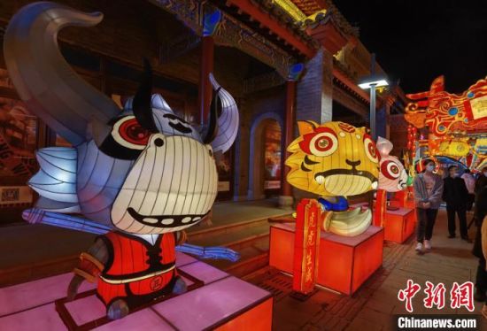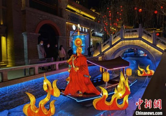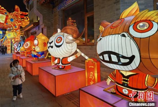 春节期间,兰州老街展出各种彩灯,古老中呈现出新时尚,吸引众多市民争相观赏。 刘玉桃 摄