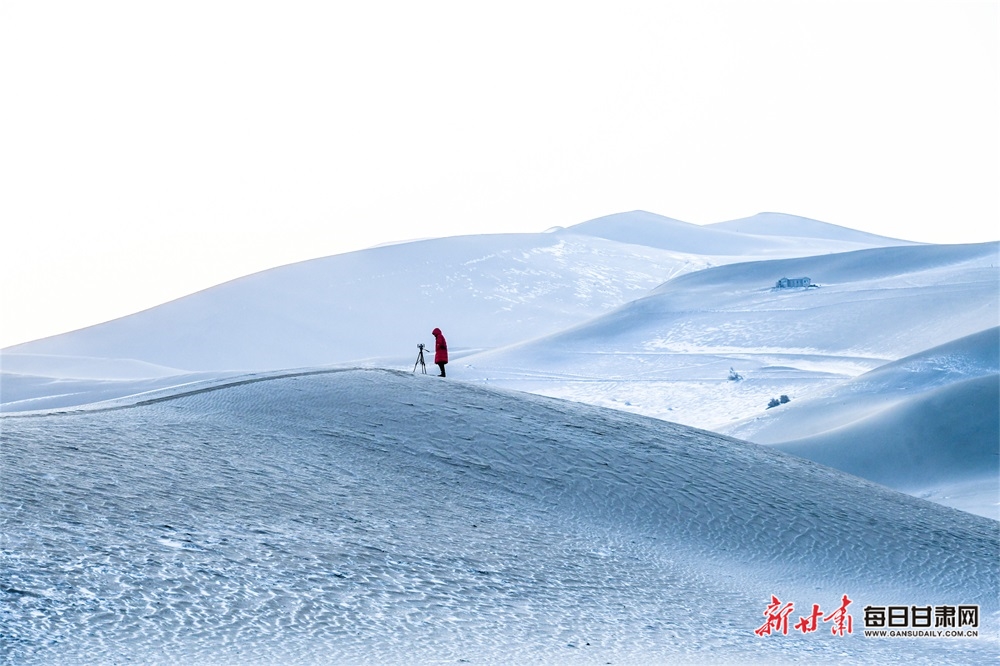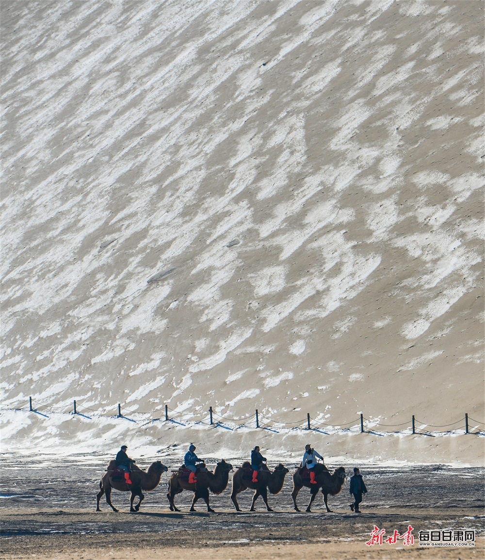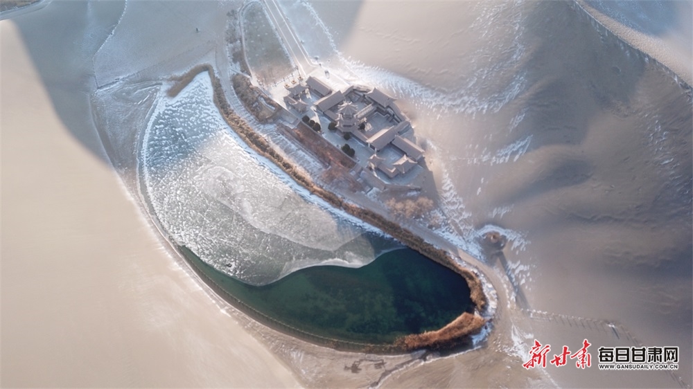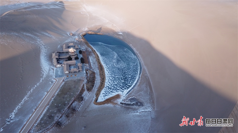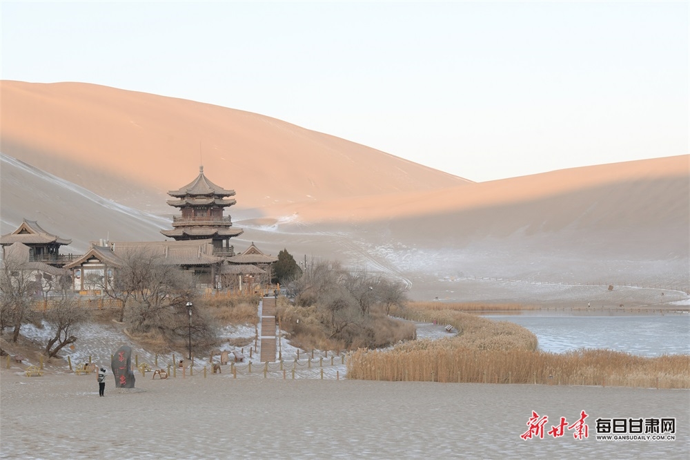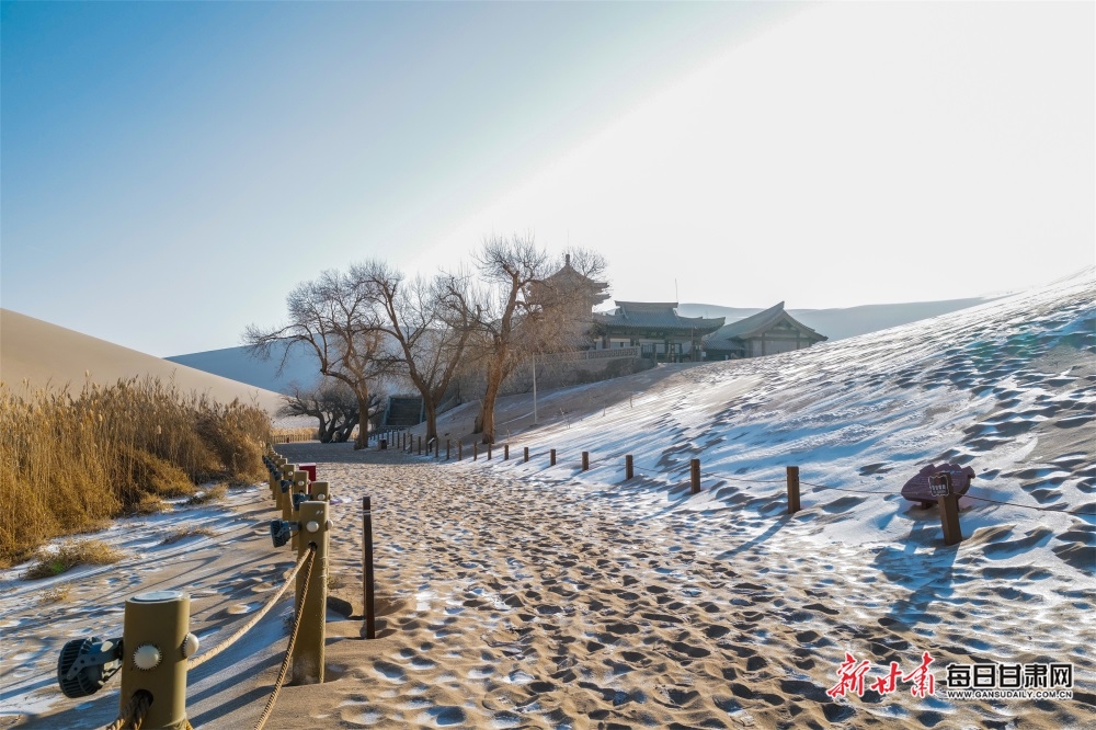 雪落敦煌如诗画 如镜"月牙"映大漠