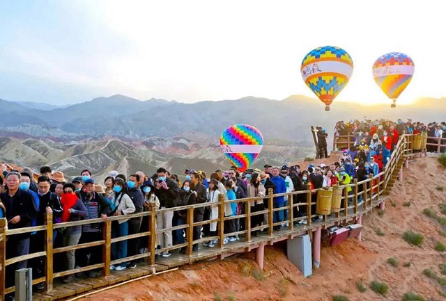 2021年,张掖世界地质公园和丹霞大景区克服新冠肺炎疫情带来的不利影响,强力推进项目建设,着力推动区域旅游联动发展,全力抓好旅游市场监管,聚力打造硬核竞争力,持续刷新“中国彩虹山”“全国最佳低空旅游目的地”品牌热力值,景区知名度和美誉度持续攀升,旅游目的地地位显著提升,热气球、直升机、动力伞、《阿兰拉格达》沉浸式梦幻山谷光影演绎等经营项目备受游客青睐,成为国内外游客心目中理想的旅游打卡地。