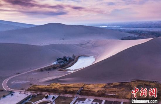近日,甘肃敦煌发布了冬春旅游季产品和优惠政策引客错峰出游。图为夕阳西下的鸣沙山月牙泉景色如画。王斌银摄