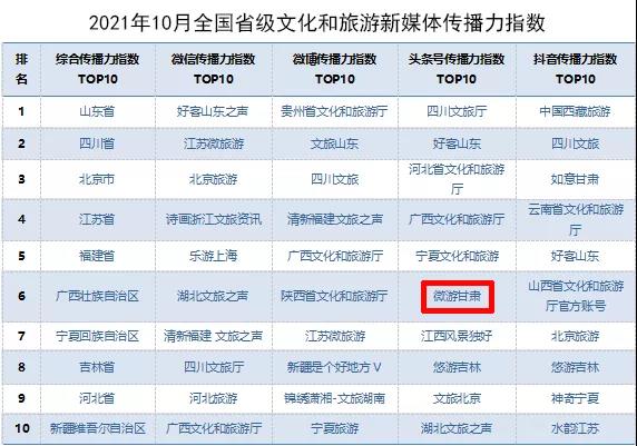 微游甘肃头条号自开通以来,通过发布甘肃省文旅资讯、优质深度报道及优质图片等作品,多角度、全方位将甘肃本地文化、旅游热点信息等受众关心关注的热点消息及时推送,更好满足人民群众的精神文化需求,起到了良好的舆论宣传作用。 2021年,微游甘肃头条号共发布文章3400余篇,累计阅读量1378万次,先后9次进入全国省级文旅新媒体传播力指数榜单前十。