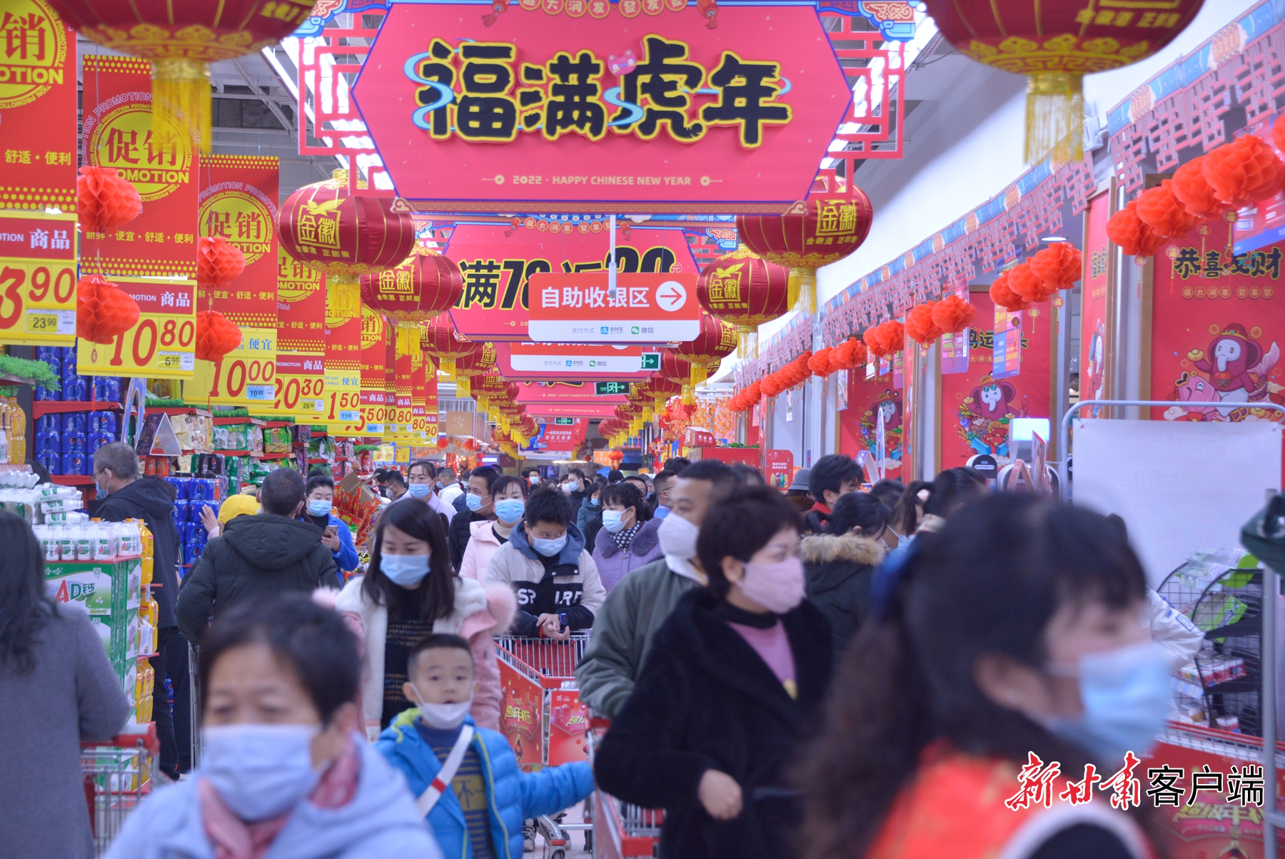 各大商超年货琳琅满目,新鲜肉食、蔬菜、水果备货充足,米、面、粮、油等产品也增加了摆货量,酒水、干果等大礼包已经占据了超市最显眼的位置。