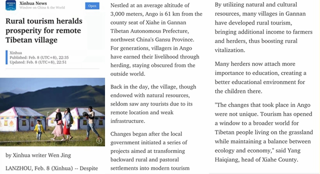 日前,新华社英文版向世界播发英文稿件,介绍甘南文旅乡村振兴成果。
