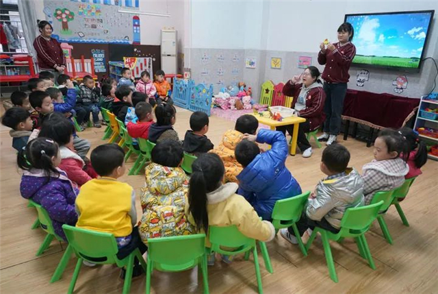 2022年3月2日,在西安市莲湖区爱尔堡幼儿园,中一班的9名听障儿童与健全儿童在一起上课。新华社记者 邵瑞 摄