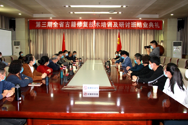 2022年3月11日下午,由甘肃省图书馆、甘肃省古籍保护中心、甘肃省图文化创意有限公司联合举办的“第三期甘肃省古籍修复技术培训及研讨班”结业式在甘肃省图书馆举行。