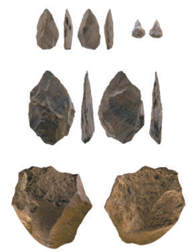 皮洛旧石器时代遗址三个阶段的石器文化类型图