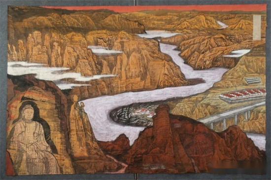 蓝献诚 国画《家在黄河岸边住》 150cm×220cm