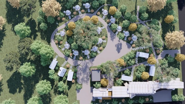 正在建设中的黄河湾景区宿集项目一期工程,位于黄河湿地公园与云客小镇之间,巧妙地与黄河、青山、村庄融合成一幅娟秀的山水画卷。根据不同的功能主题,一期工程共分为三个地块,一号地块建设以餐饮营地为主;二号地块计划新建特色主题民宿和森林综合体,包括剧场、超市、咖啡厅、连廊等;三号地块建设以野奢民宿为主,包括星空泡泡屋、三角屋、林下家庭房等,极具生活气息的场景设计,让黄河岸畔的宿集项目更具诗意、格调和内涵。