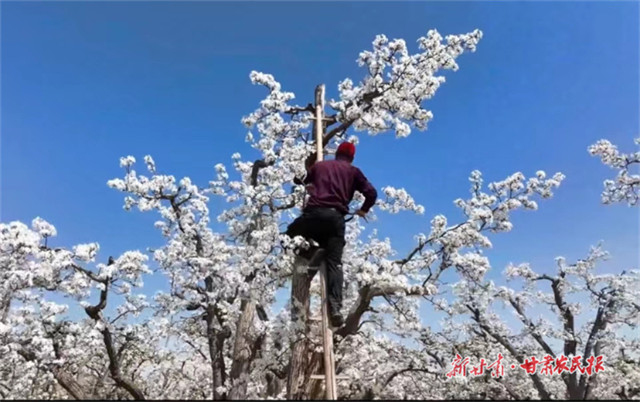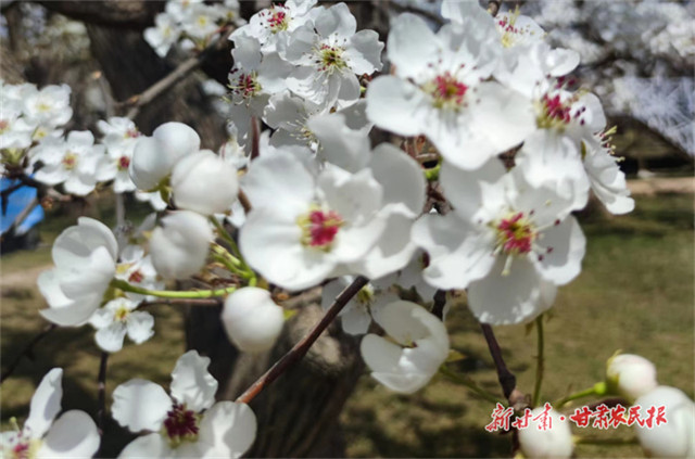 当下,正是兰州市皋兰县什川古梨园万亩梨花竞相绽放之时。那一簇簇、一层层沿着盘旋的虬枝蔓延如雪、堆砌成壮观花海的梨花,素净嫣然,圣洁高雅,“醉”美了整个春天。