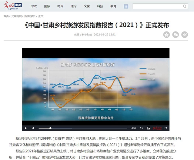 打造乡村旅游发展的“风向标” 践行乡村振兴和富民兴陇新使命——《中国·甘肃乡村旅游发展指数报告(2021)》发布得到广大网民和媒体的高度关注