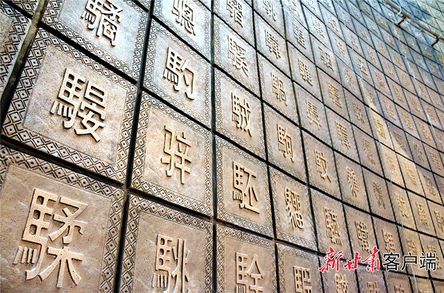 沿着一个个由泥活字水景小塔组成的文化长廊,漫步向西,就进入了武威雷台景区文化旅游综合体的核心区——文化体验区,在这里“大汉赋”“凉州词”“天马歌”三大主题体验馆虽还未完工,但其恢弘的气势已让人对景区正式营运产生了深深的期待。在闪耀的焊花和轰鸣的机器声中,首先映入眼帘的是镶嵌着上千个以“马”字为偏旁的巨大曲面铜色汉字墙,造型独特,字体迥异,雄浑壮观。置身其中,如同进入悠远的文化时空和精彩的天马世界……