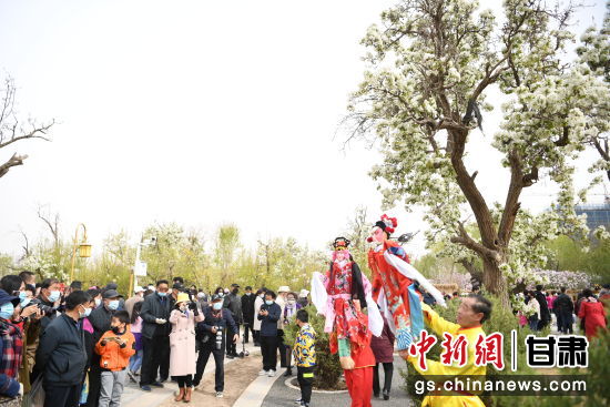 国家级、省级非遗项目甘州小调萦绕在整个梨园中。张掖市民张蕊说:“今天特地穿着汉服来逛梨园,因为我知道梨园也属于我们的传统文化,希望我们的传统文化可以更加发扬光大。”邵家班子杖头木偶戏和市级非遗项目甘州剪纸、刺绣、木偶变脸折子戏等展演展示活动,让市民近距离感受非遗文化的魅力。绘画写生的师生正用画笔描绘春日甘州美景。