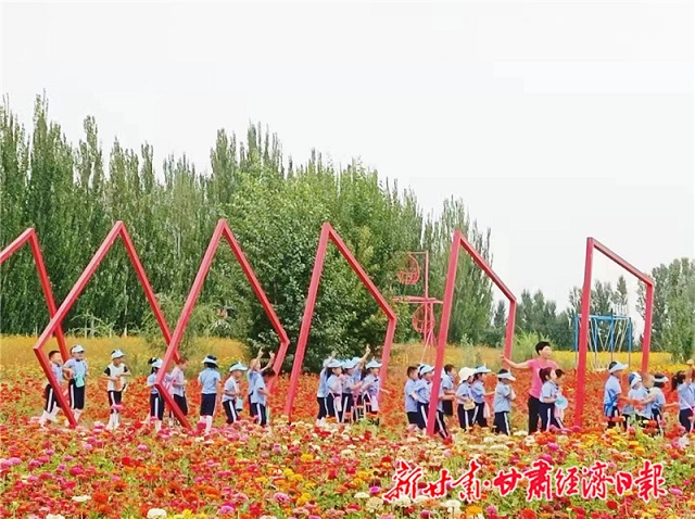 孩子们徜徉在花海之中。新甘肃·甘肃经济日报通讯员 韩璇 摄