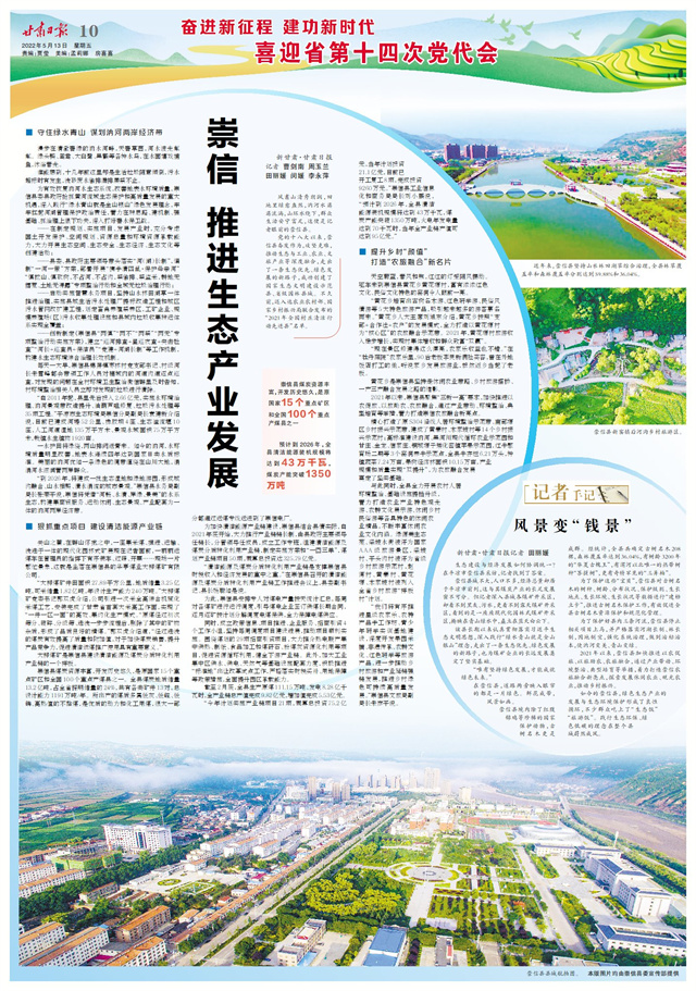 【奋进新征程 建功新时代 喜迎省第十四次党代会】崇信 推进生态产业发展