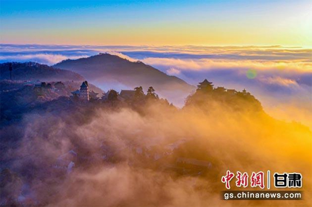 图为缭绕的雾气环绕着崆峒、太统两山。(资料图)