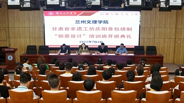7月4日,2021年甘肃省非遗工坊庆阳香包绣制“创意设计”培训班在兰州文理学院顺利开班。本次培训班在甘肃省文化和旅游厅的安排部署和统一领导下,由兰州文理学院承办。兰州文理学院党委委员、副校长刘畅,省文旅厅非遗处相关人员,参训全体学员参加了开班典礼,兰州文理学院继续教育学院院长赵宁主持开班仪式。