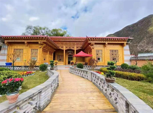 民宿坐落于被誉为“青藏之窗.甘南之眼”冶力关镇,建筑上还原了甘南传统民居特色,有临潭苫子房、迭部踏板房、临潭院子等,内部设计则是由古老的藏族传统雕刻图案组成,展现了甘南的藏族生活特色。