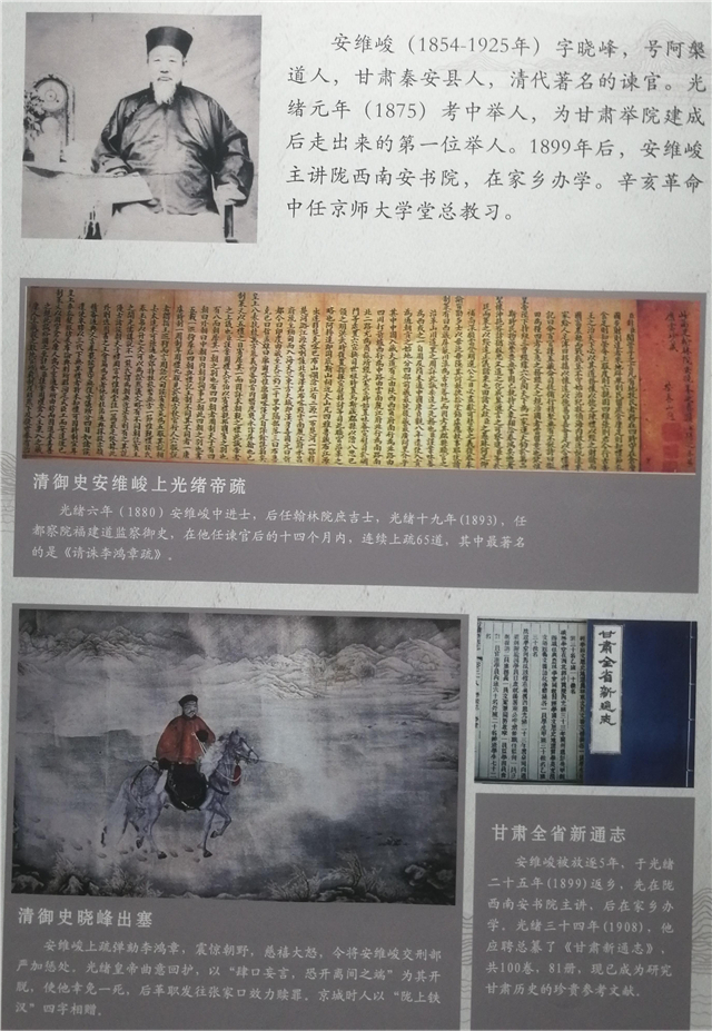 甘肃贡院建院以来,发挥作用30年,共举行了13次乡试,考中举人681人,进士116人,这些人物或在朝为官,关怀百姓;或发展实业,重视民生。该单元展示了甘肃贡院走出的重要人物图像和事迹。