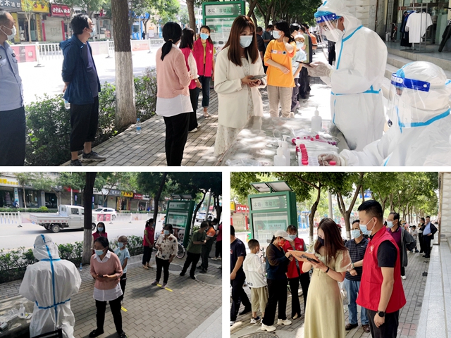 7月19日,定西市文体广电和旅游局党支部联合所在辖区社区——中西社区在区财政局家属院片区核酸采样点开展志愿服务。“大家戴好口罩,保持一米线距离,请提前把健康码打开……”,在核酸采样现场,来自定西市文体广电和旅游局党支部的志愿者们协助工作人员引导需要核酸采样的群众有序排队、登记信息,提醒她们做好个人防护,帮助有需要的老人查询健康码,在大家的共同努力下,该片区核酸采样工作有序开展。