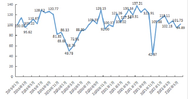 图为2019年1月至2022年7月甘肃乡村旅游发展指数走势(单位:点)