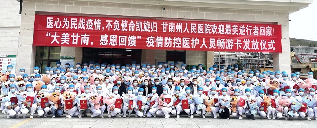 医护人员是战胜新冠肺炎疫情的中坚力量,是新时代最可爱的人。新一轮新冠肺炎疫情发生以来,医护人员冒着被感染的风险,承担起特殊而繁重的救治工作,在没有硝烟的战场上经历了生死考验,出色地完成了医疗救治任务,履行了白衣天使的庄重誓言和神圣使命。为致敬最美逆行者,感谢医护人员在甘南疫情防控中做出的突出贡献,根据甘南州委、州政府的部署,甘南州文化广电和旅游局积极整合文旅资源,组织开展“大美甘南 感恩回馈”主题活动,面向支援甘南疫情防控工作的医护人员推出“全域旅游免门票、酒店入住房价打折”优惠政策,制作了“大美甘南 感恩回馈——支援甘南疫情防控医护人员畅游卡”,自2022年9月1日至2023年12月31日,持卡医护人员凭畅游卡,本人和随同的3名亲友享受26个A级旅游景区免门票,24个旅游星级饭店、25个非星级宾馆、特色民宿入住折扣优惠。