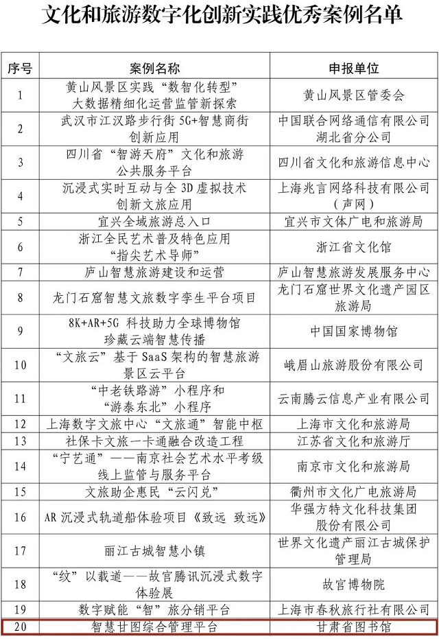 2022年文化和旅游数字化创新实践案例公布 甘肃2平台入选