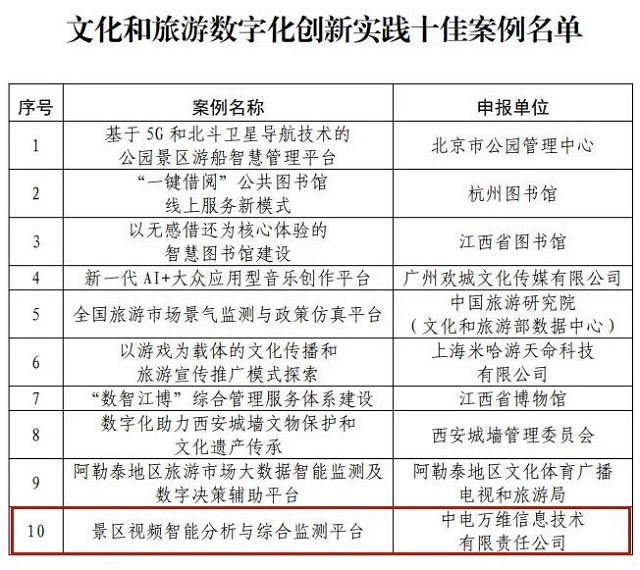 近日,文化和旅游部办公厅印发通知,发布2022年文化和旅游数字化创新实践案例。由甘肃省文化和旅游厅推荐的“景区视频智能分析与综合监测平台”获评数字化创新实践十佳案例,“智慧甘图综合管理平台”获评数字化创新实践优秀案例(共20个)。本次入选案例是继2020年“一部手机游甘肃”综合服务平台及“甘肃文化旅游大数据交换共享平台”应用获评文化和旅游部信息化发展典型案例后,甘肃又一次以两个优秀案例同时入选数字化创新实践典型案例。