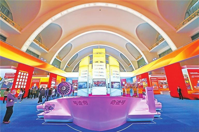 “奋进新时代”主题成就展展馆外景。