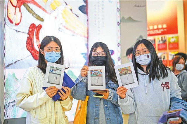 观众排队体验甘肃单元“我在敦煌画壁画”互动项目。