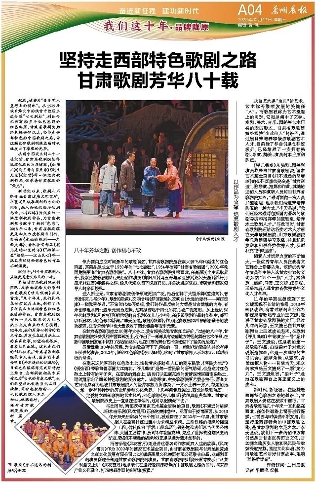 【奋进新征程 建功新时代|我们这十年·品牌陇原】坚持走西部特色歌剧之路 甘肃歌剧芳华八十载