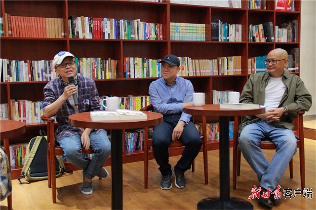 《敦煌本纪》精装典藏版新书发布会,从左至右分别为:叶舟、方健荣、曹建川。