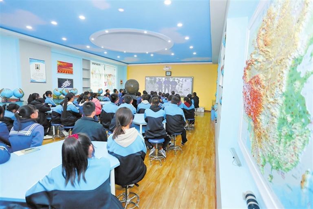 10月12日,平凉市第五中学师生收看“天宫课堂”第三课。当天下午,神舟十四号飞行乘组在轨采取天地互动方式向青少年演示相关实验。新甘肃·甘肃日报通讯员 吴希会
