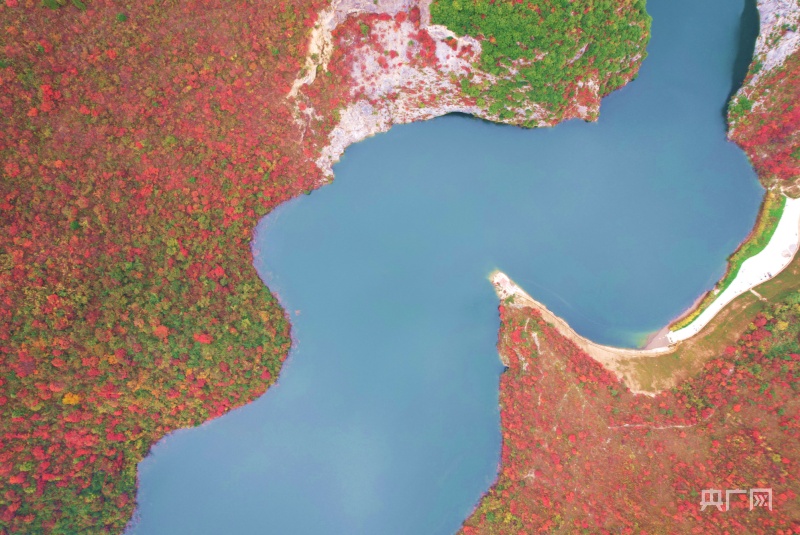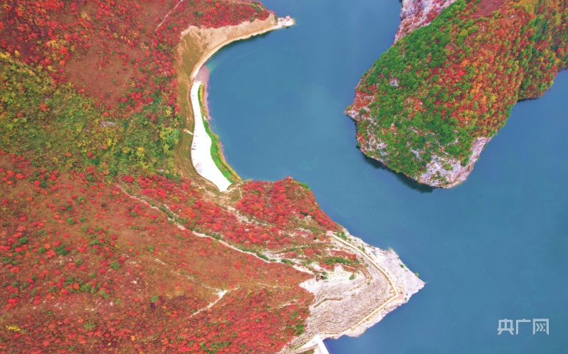 央广网兰州10月27日消息(见习记者李红军 通讯员刘敏)金秋十月,甘肃省陇南市成县磨坝峡水库,群山环绕、碧波荡漾,漫山红叶将水库装扮得五彩斑斓,勾勒出一幅“水天一色”的秋日画卷。