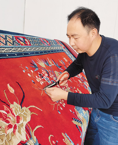 甘肃临夏手工地毯非遗传承人梁俊:穿绳系扣 手手相传