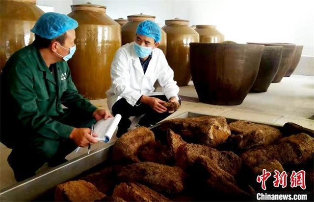 临夏麸子醋企业员工查看大曲成色(资料图) 临夏州委宣传部供图