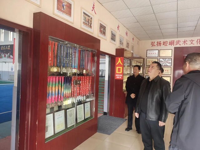 调研组一行详细听取了崆峒文武学校负责人关于学校建设、崆峒武术发展、学校未来发展规划等情况的介绍,并实地察看了学校基础设施建设、近年取得的成绩等。