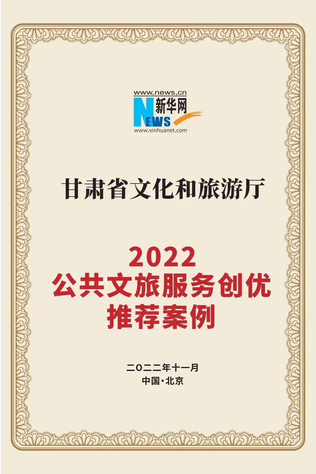2020年,甘肃文旅大数据平台和“一部手机游甘肃”平台获评文化和旅游部信息化发展典型案例。2021年,“甘肃景区(场馆)分时预约系统提升适老化功能”入选文化和旅游部首批发展智慧旅游提高适老化程度示范案例。在由新华网主办的第八届和第九届文化和旅游融合创新论坛中分别入选“2021公共文化旅游服务提升典范案例”“2022公共文旅服务创优推荐案例”。