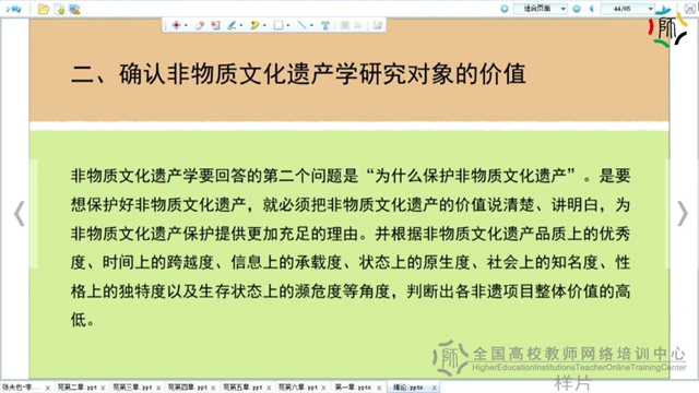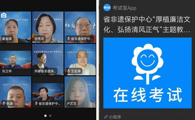 在近两个月的时间里,省非遗保护中心要求大家充分利用各种学习平台和网站,广泛汲取非遗保护工作知识与技能,每日学习阅读省非遗保护中心钉钉全员圈里上传的理论文章,自学各类非遗丛书,保持学习劲头不减,努力补齐自身短板;组织业务骨干统一参加由全国高校教师网络培训中心同北京联合大学文化遗产研究院举办的“第六届中国高校非物质文化遗产学教师培训班”直播培训活动,认真聆听全国非遗保护领域知名专家苑利、方李莉、齐易、孙建君教授的精彩讲座,系统掌握“非物质文化遗产学”理论基础和实践方法;指定专人负责,搜集学习资料,制定学习进度,在每周四下午集中全体职工开展内部线上业务学习讨论,引导大家围绕工作重点难点、运用所学理论知识、提出针对性强的工作措施,增强持之以恒创造特色与亮点的信心;利用每周五的政治理论学习时间,安排学习贯彻党的二十大精神专题讲座,每位干部畅谈学习体会,交流习近平总书记关于文化强国的重要指示,明确非遗保护工作新要求;组织开展党的二十大和廉洁文化知识竞赛等活动,检验了学习成果。