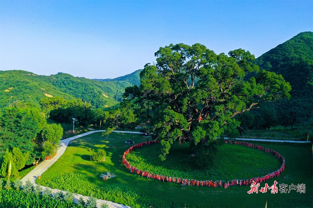 环顾周边,群山环抱,石崖壁立,形成了保护古槐生生不息的天然屏障。千百年来,星光流转,屹立千年的古槐在时光的长河里形成一道风景。