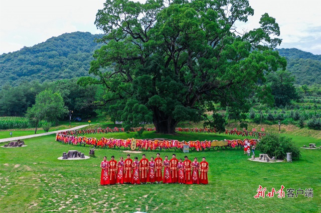 当地年轻人在古槐树下拍摄结婚照。资料图