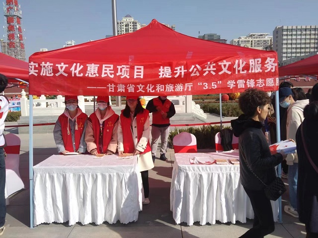 省文旅厅组织厅机关有关处室和省图书馆、省文化馆、省歌剧院、省陇剧院的志愿服务人员共70余人参加了启动仪式,并开展了现场志愿服务。(文/甘肃省文化和旅游厅 申珍示 康健)