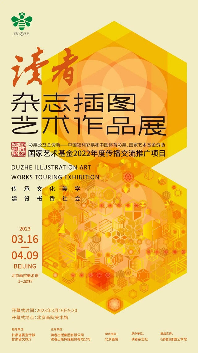 由中共甘肃省委宣传部、甘肃省文化和旅游厅指导,读者出版集团有限公司、读者出版传媒股份有限公司主办,读者杂志社承办,北京画院提供学术指导的2022年度国家艺术基金传播交流推广项目——《读者》杂志插图艺术作品展将于2023年3月16日上午在北京画院美术馆开幕。