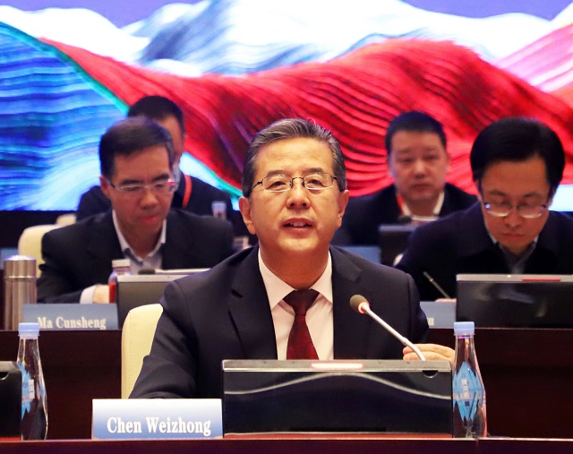 陈卫中对论坛的如期举办表示热烈祝贺,向长期以来关心支持甘肃发展的联合国教科文组织和世界银行表示衷心的感谢。他指出,多年来,甘肃省非常注重文化遗产保护,围绕加快敦煌研究院世界文化遗产保护典范和敦煌学研究高地建设,在推进敦煌文化、长城文化、黄河文化、始祖文化、红色文化、民族民俗文化保护利用方面取得了一定成效。2019年世行批准实施甘肃丝绸之路经济带文化传承与创新项目,是中国获得单笔贷款金额最大、唯一的文化旅游类项目。在项目实施过程中,夏泽翰先生、艾威达先生多次连线指导、有力推进,目前,7个子项目已全部开工建设,完成合同签订金额约3.86亿元人民币。甘肃世行贷款文化传承创新项目的实施,为我们共同促进文化遗产保护探索了甘肃经验和做法,进一步提升了甘肃文化遗产保护专业化、国际化水平,也为培养甘肃项目人才、扩大甘肃文旅国际影响力发挥了重要作用。希望通过举办这次论坛,进一步深化甘肃省与联合国教科文组织和世界银行等国际组织的交流合作,积极推进文化遗产保护传承、活化利用,推动文明交流互鉴,共同构建稳定多维的世界遗产保护合作机制。